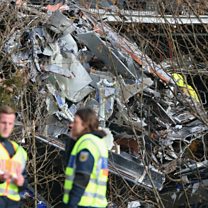 (Photo: Rescue workers near the wreckage of two trains that collided head-on in Bavaria, Germany. Credit: Getty Images)