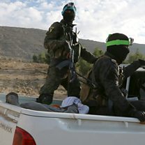 (Photo: Fighters from the People's Protection Units (YPG), who are fighting alongside with the Democratic Forces of Syria, ride on a pick-up truck in Syria.