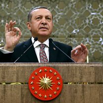 (Photo: Turkish President, Recep Tayyip Erdogan, addresses a meeting at his palace in Ankara. Credit: AP)