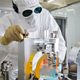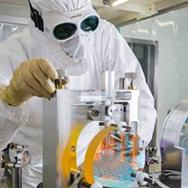 (Photo: Scientist looks at telescope of the interferometer Virgo detector which is used for the detection of gravitational waves.
