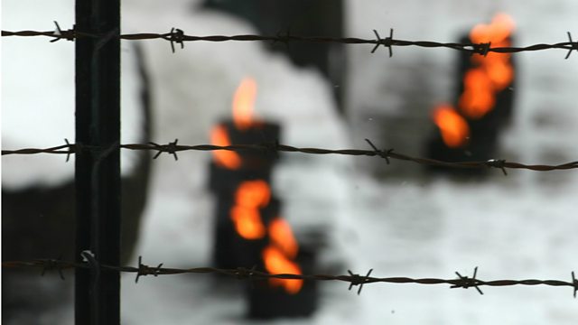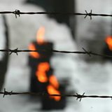 (Photo: Candles burn behind barbed wire at the Auschwitz death camp, Oswiecim southern Poland. Credit: Associated Press)