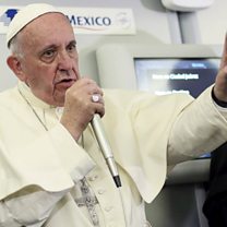 (Photo: Pope Francis addressing reporters on board a plane. Credit: Reuters)