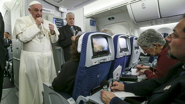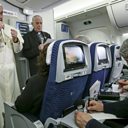 (Photo: Pope Francis gestures during a meeting with the media onboard the papal plane while en route to Rome. Credit: Reuters)
