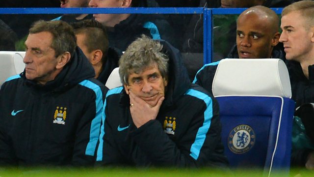 (Image: Manuel Pellegrini (R), Ruben Cousillas (C) and Brian Kidd (L) gesture during the English FA Cup fifth round football match between Chelsea and Manchester City. Credit: AFP)