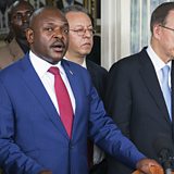 (Image: UN Secretary-General Ban Ki-Moon and Burundi's president Pierre Nkurunziza speak to the media after talks at the president's office. Credit: Griff Tapper/AFP/Getty Images)