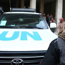 The UN carries out its first air-drop of aid to Syria, Austria calls for a big cut in migration, a warning that parents are causing havoc at children's football matches in England. (PHOTO: A Syrian man stands in front of a UN vehicle escorting a Red Crescent convoy carrying humanitarian aid, CREDIT: AFP)