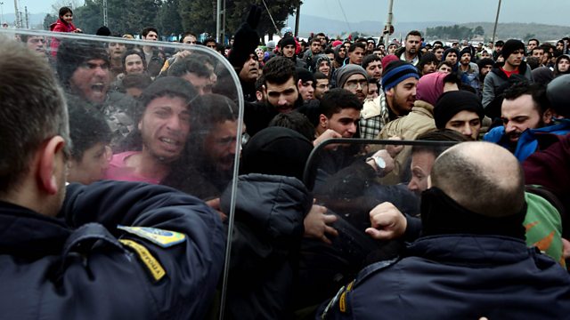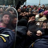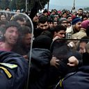 (Photo: Refugees try to break the Greek police blockade at Idomeni towards the border fence of Macedonia. Credit: AFP/Getty Images.)