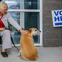 (Photo: Abby waits while owner casts vote at Mary Lin Elementary School, in Atlanta, Georgia, USA. Credit: EPA)