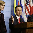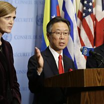 (Photo: the US, South Korean and Japanese ambassadors to the UN. Credit: AP)