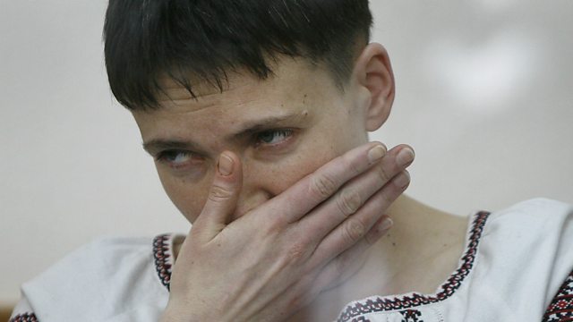 Ukrainian helicopter pilot Nadia Savchenko to go on hunger strike after Russian court refuses to let her make a closing statement; Trump fights back; stark warning for migrants.