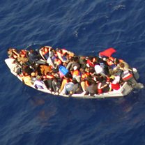 (PHOTO: Boat packed with migrants off Greece. CREDIT: AFP/Getty)
