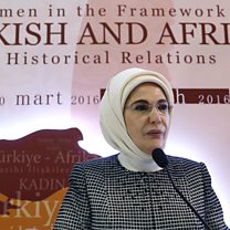 (Photo: Emine Erdogan makes a speech in Ankara. Credit AP)