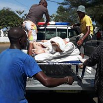 At least five people killed in gun attack at Ivory Coast beach resort; many casualties in Ankara suicide bombing; Angela Merkel suffers losses in regional elections in Germany. (PHOTO: Victims of the gun attack are loaded onto a truck in front of a hotel in Ivory Coast. CREDIT: STRINGER/AFP/Getty Images)