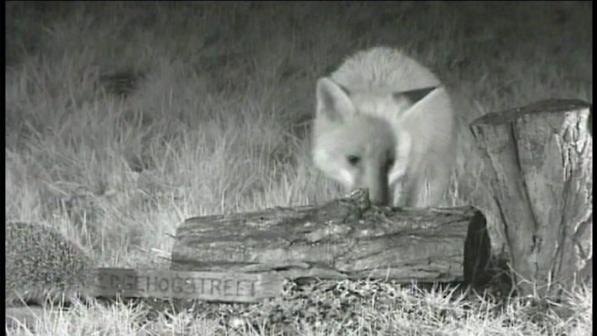 A wildlife enthusiast has filmed a fox and a hedgehog feeding together in his back garden.