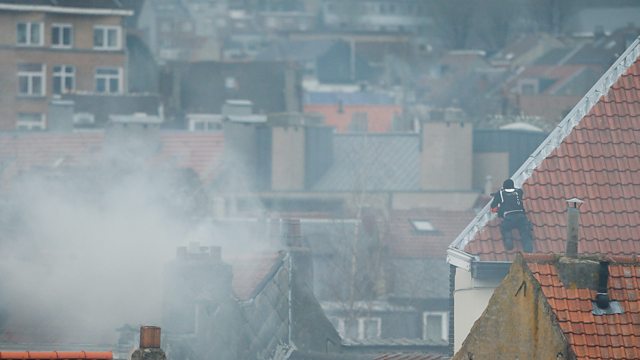 (Photo: A police officer takes position on a rooftop in Brussels. Credit: EPA)