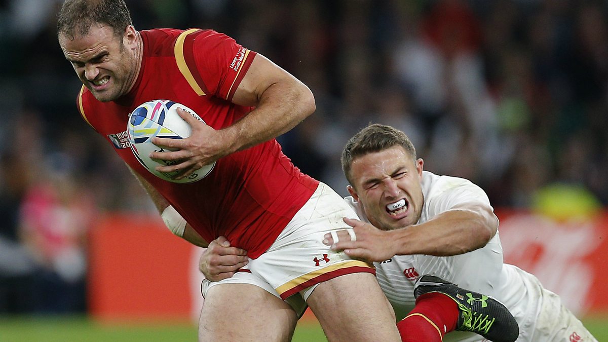 (Photo: Jamie Roberts being tackled by Sam Burgess during the 2015 Rugby World Cup match between England and Wales at Twickenham. Credit: Associated Press)