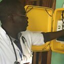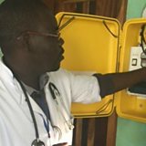 (Photo: Medical assistant George Phiri demonstrating the 'solar suitcase')