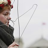(Photo: A protester in Poland holds coat hangers, a symbol of illegal, life threatening abortions. Credit: AP)