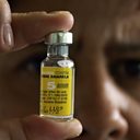 (Caption: A nurse shows a vaccine of yellow fever in Brazil. Credit: Joedson Alves /AFP/Getty Images)