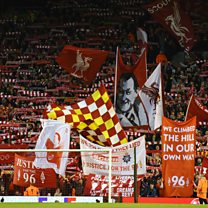 Liverpool and Borussia Dortmund fans sing Kop anthem You'll Never Walk Alone ahead of their Europa League quarter-final second leg, which Liverpool won in dramatic fashion.