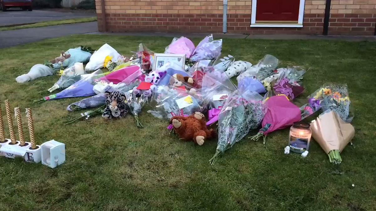 Floral tributes outside the house on Dawson Avenue in Spalding where Liz Edwards, and 13-year-old Katie were found dead