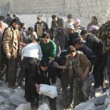 (Photo: Rescuers look for survivors after government air-strike on Aleppo. Credit: Reuters)