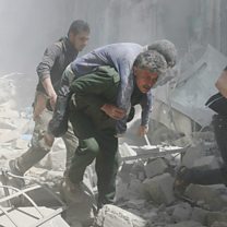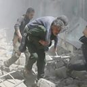 (Photo: Syrians rescue an injured man in Aleppo. Credit: AFP/Getty Images.)