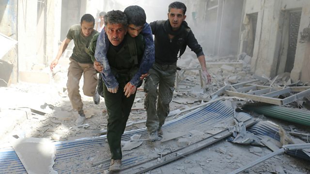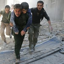 (Photo: Injured man rescued amid the rubble in Aleppo. Credit: AFP/Getty Images.)