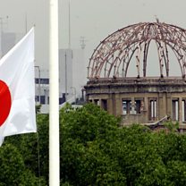 (Photo: The Japanese national flag flutters at half-mast in the foreground of the atomic bomb dome at the Hiroshima Peace Memorial Park, in western Japan. Credit: Reuters)
