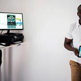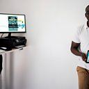 (Photo: Senegalese software programmer Ousseynou Khadim Beye, with tablet computer displaying his Cross Dakar City application.