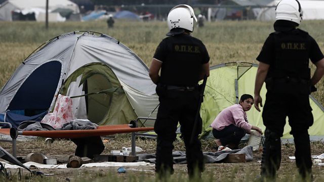 Hundreds of police arrived at dawn to move thousands of migrants and refugees from the camp on the Macedonia border. Also - President Obama's $6 Vietnam meal. And the "father of all hardliners" is elected to powerful clerical council in Iran. (Photo: YANNIS KOLESIDIS/AFP/Getty Images.)