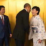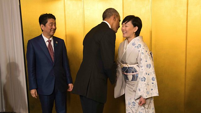 (Picture: The Japanese Prime Minister Shinzo Abe and his wife Akie Abe greet US President Barack Obama as he prepares for his visit to Hiroshima. Credit: AFP/Getty Images)