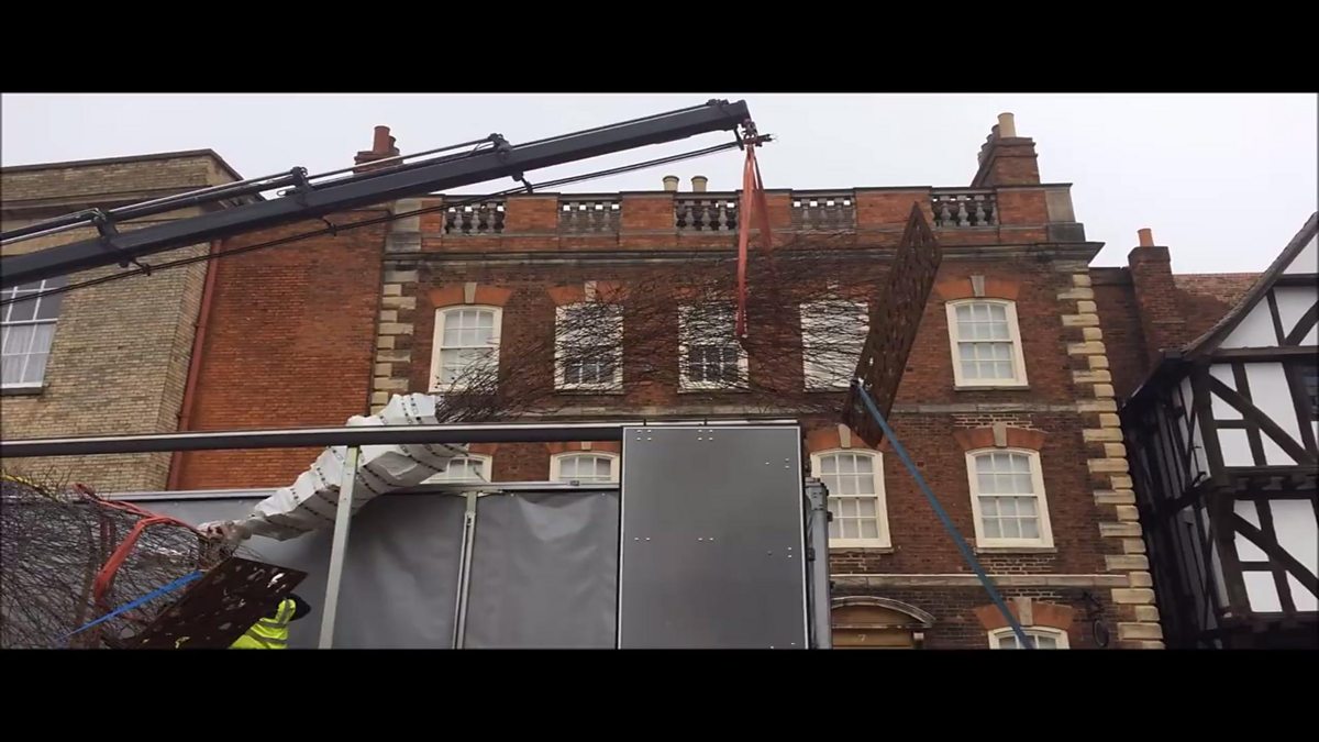 The poppies which were installed at the Tower of London being brought to Lincoln Castle