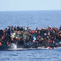 (Photo: Migrant boat capsizing off Libyan coast. Credit: EPA.)
