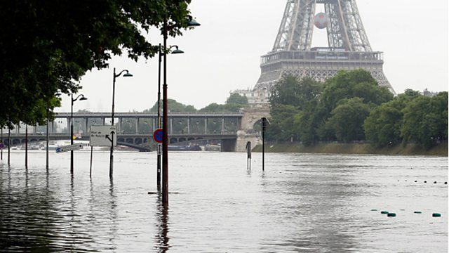 (Photo: Water rises near the Eiffel Tower in Paris, France as the River Seine's embankments overflow after four days of heavy rain on June 2, 2016. Credit: Getty Images)