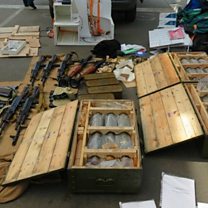 (Photo: boxes with explosives and weapons seized by Security Service of Ukraine after detaining a Frenchman. Credit: EPA)