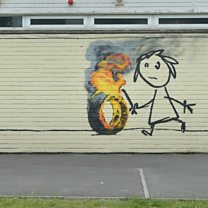 (Picture: A Banksy mural which was painted on the side of one of the classrooms of a primary school in Bristol. Credit: PA Wire.)