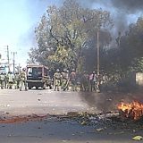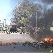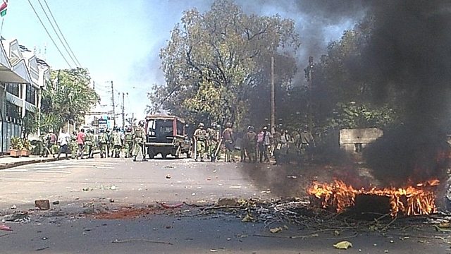 (Photo: Protesters set fire to barricades in Kisumu. Credit: @acholasimon