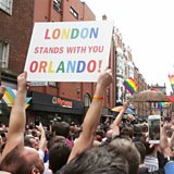 (Picture: People in London during a vigil for the victims of Sunday's Orlando shootings at a Gay nightclub in Florida. Credit: AP)