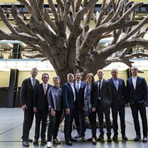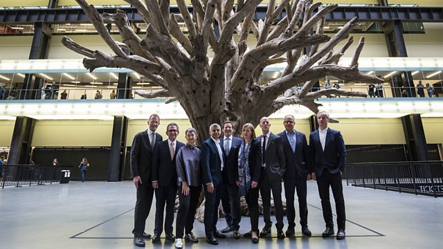 (Picture: Tate representatives pose in front of Ai Weiwei's Tree sculpture at the Tate Modern, as it unveils its new Switch House building , Credit: Getty Images)
