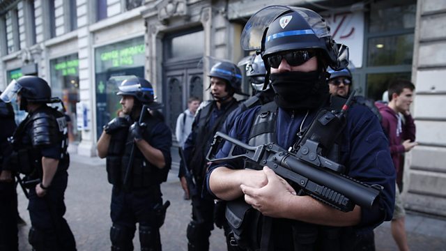 Security is stepped up in the French city of Lille as England and Russia fans gather for Euro 2016 matches. Violence between fans marred Saturday's game and Russia has received a suspended disqualification from the tournament. Also, why Orlando gunman's wife may face charges, and the latest from the E3 gaming conference.
