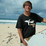 (Photo: Blaine Alain Gibson holding debris found on beach. Credit: EPA.)