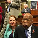 (Photo: Democrat members of Congress, as they participate in sit-down protest seeking a vote on gun control measures. Credit: AP)