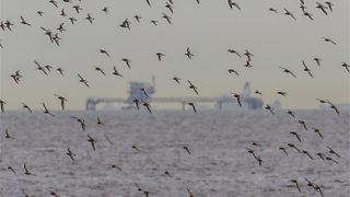 Thousands of calling shorebirds take to the air, forming a giant cloud which rolls across the sky. Ann Jones witnesses one of the two great avian spectacles to be seen still at Yalu Jiang Nature Reserve in northern China. Local shorebird expert Bai Qingquan talks about his emotions when he sees the other - birds beginning their long migratory flight to the Arctic to breed.