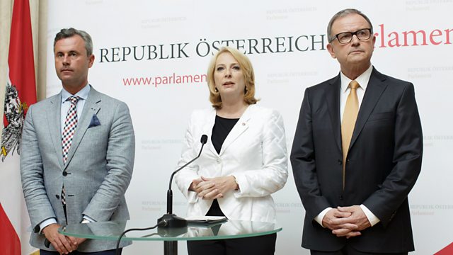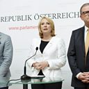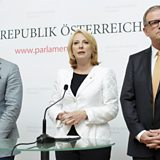 (Photo: Austrian FPOe presidential candidate Norbert Hofer, Parliamentary President Doris Bures and Deputy Karlheinz Kopf. Credit: Lisi Niesner/EPA)