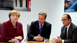 Arweinyddion dan bwysau. Brexit. Chwyldro. Vaughan Roderick a'i westeion sy'n trafod.