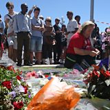 (Photo: Flowers are laid out near the site of the truck attack in Nice. Credit: Associated Press)