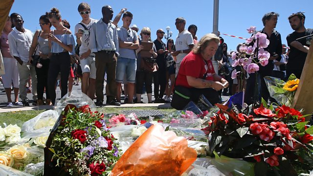 Floral tributes cover the boulevard where dozens died; police identify the attacker as Mohamed Lahouaiej-Bouhlel; how is France dealing with its third terrorist attack in 18 months?