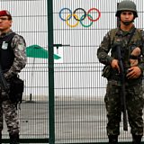 (Photo: Members of Brazilian security forces guarding Olympic Village in Rio. Credit: Reuters/Fabrizio Bensch)
