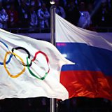 (Photo: The Olympic and Russian flags, Credit: EPA)